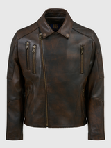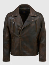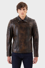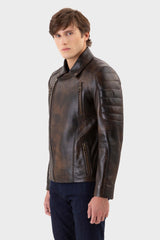 Chester Burnt Chocolate Regular-Fit Men's Biker Leather Jacket made of Nappa Full-Grain Lambskin Leather with Zipper