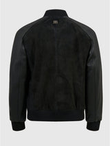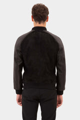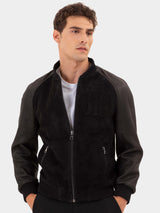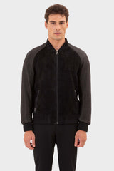 Ertu Black Pearl Regular-Fit men's bomber leather jacket made from textured Volnarben lamb leather and suede mix with zipper closure