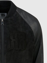 In a noble leather mix of velvety suede and supple full-grain leather, the piece impresses as a highlight upgrade for different looks, while the label- Embossing on the chest provides typical signature flair. The casual blouson cut with raglan sleeves suits men with style and coolness.