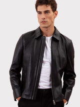 Gerald Black Onyx Regular-Fit Men's Blouson Leather Jacket made of Nappa Full-Grain Lamb Leather with Zipper