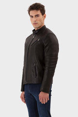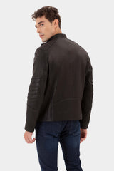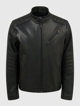 Logan is the masculine racer leather jacket made from full-grain lamb leather from ROCCOBAN. Stylish reinterpretation of racing style. This iconic jacket has a regular fit and features quilted panels on the shoulders and elbows. The structure of the leather is worked out through a complex tanning process. A natural crinkled look gives the leather a particularly strong character and softness for an authentic look. CLASSIC racer with a MODERN statement.